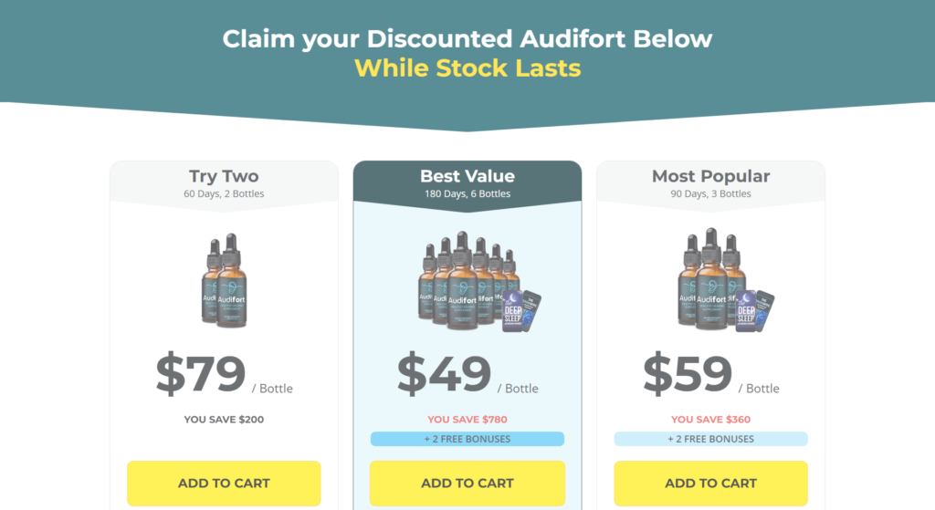 Visit the official Audifort™ site – save $780, pay $49 per bottle and order with confidence.